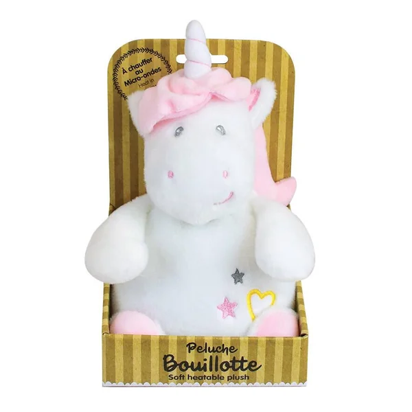 Cette jolie peluche bouillotte LICORNE- Pour apaiser votre enfant, cette Peluche Bouillotte LICORNE est idéale pour calmer les maux de ventre, réchauffer et accompagner votre enfant pour de longues nuits – A chauffer au micro-ondes, 500 – 600 watt durée 45 minutes. 700 – 800 watt durée 35 minutes. Composée de Micro perles d’argile –