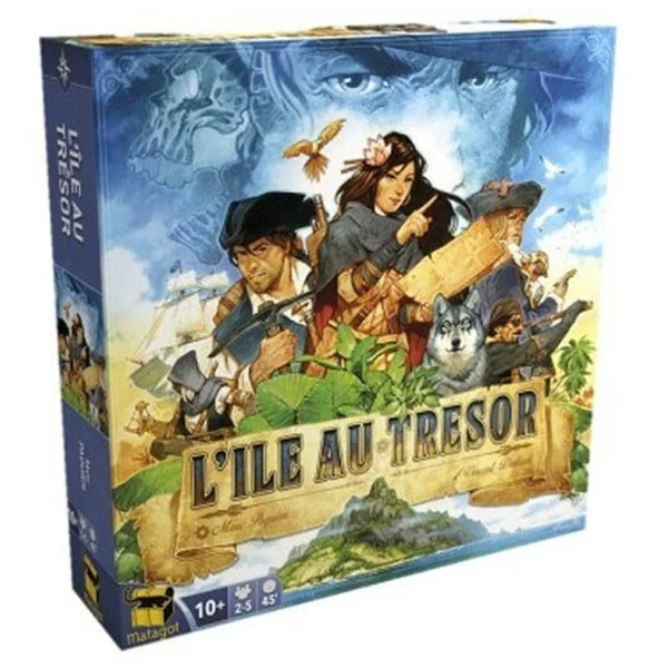 Après une mutinerie à bord, Long John Silver est retenu prisonnier par son équipage, et il est le seul à connaître l’emplacement exact du trésor ! Incarnez un pirate à la recherche du butin et fouillez l’île pour retrouver le trésor, ou mettez-vous dans la peau de Long John Silver, induisez les autres en erreur, et réussissez votre fuite pour aller le chercher vous-même. 1 plateau de jeu, 1 plateau Calendrier, 1 piste Indice, 5 mini maps, 5 paravents, 5 figurines de pirates, 5 feutres de couleurs différentes, 5 plateaux Actions spéciales, 5 pions Ordre du tour, 19 cartes Indice, 11 cartes Quartier, 8 cartes Boussole, 6 tuiles Bluff / Vérité, 1 réglet de déplacement, 1 boussole, 1 sextant, 2 gabarits de recherche, 1 livret de règles Mousse, 1 livret de règles Capitaine- Nombre de joueurs 2 à 5. Durée de la partie 30 minutes à 1 h.