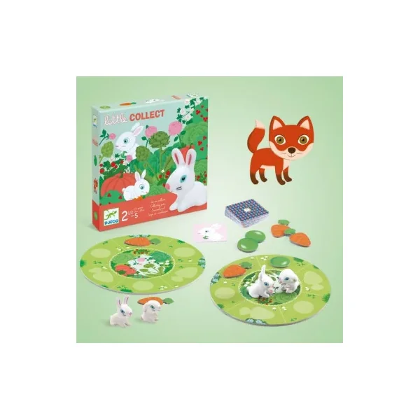Dans Little collecte, vous devrez récolter des carottes et des petits pois pour approcher les petits lapins. Mais attention au renard qui rôde! Qui sera le premier à compléter son plateau? Un premier jeu de collecte pour jouer avec papa et maman.