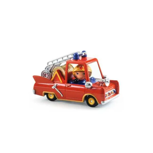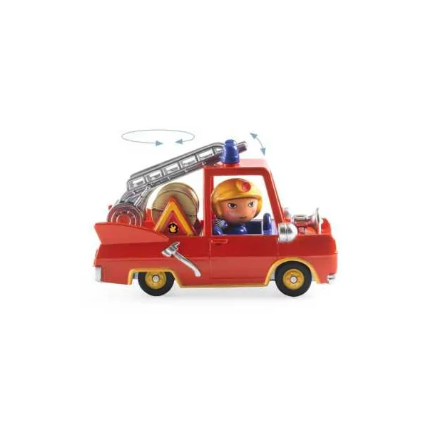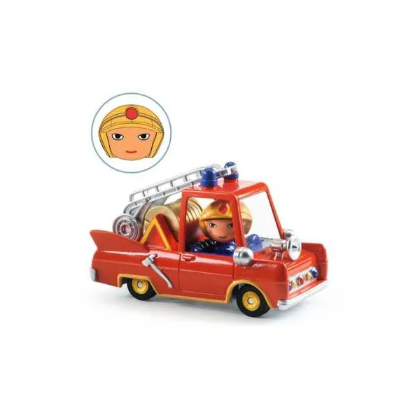 Découvrez Little Fire Truck de la collection Crazy Motors de Djeco, une camionnette de pompier en métal avec son drôle de pompier au volant. Un jouet pour les enfants de 3 à 9 ans.
