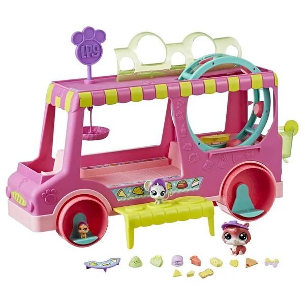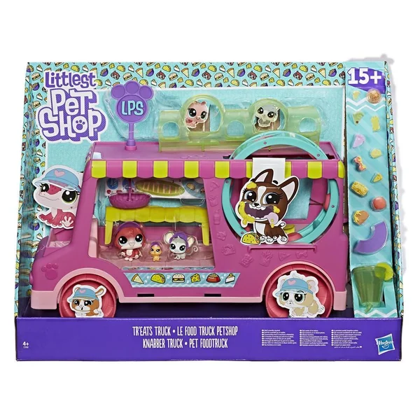Inspiré du dessin animé, les Petshop montent à bord du food truck où ils pourront savourer leurs friandises et faire un tas d’activités géniales ! Inclus: 3 Petshop et 20 accessoires sur le thème de la nourriture. Un tas d’activités à faire dans les roues du foodtruck, un toboggan…