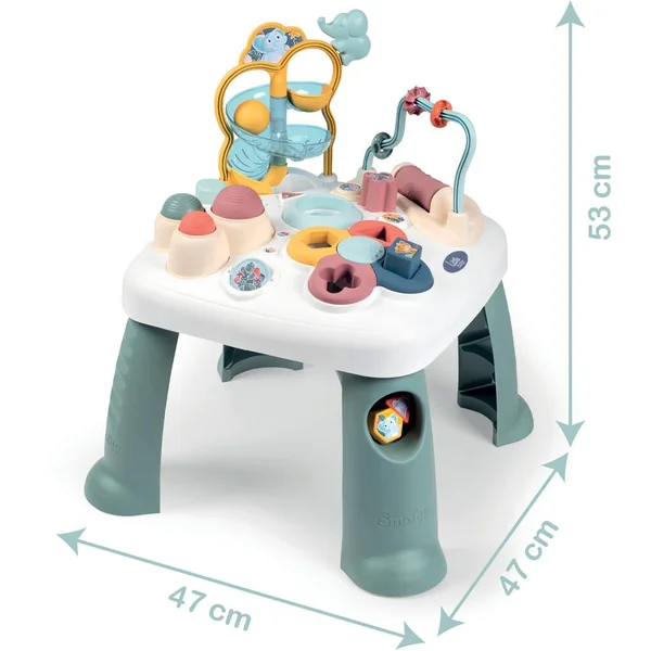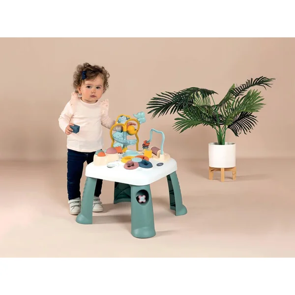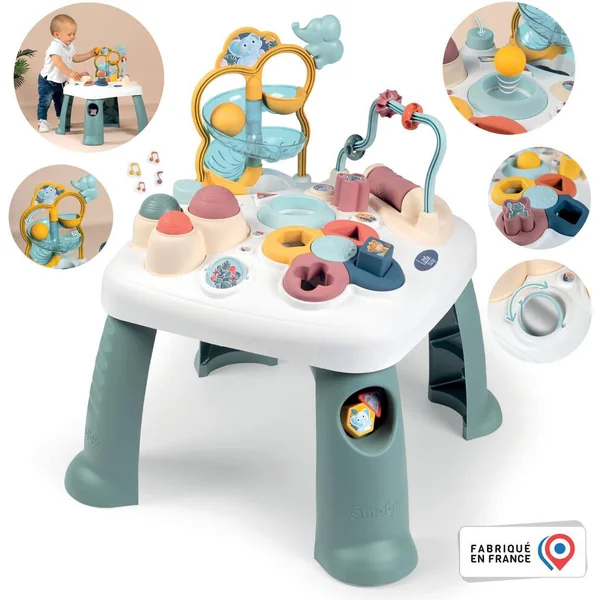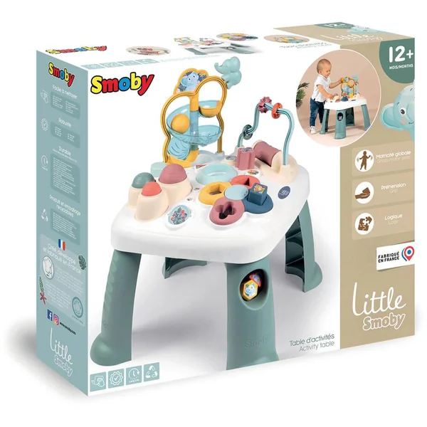 Avec la table d’activités Little Smoby votre enfant pourra s’amuser tout en développant sa motricité ! Les nombreuses fonctions mécaniques de cette table permettront à votre enfant de développer sa dextérité et l’occuperont pendant des heures. Elle possède un trieur de formes, un boulier, un miroir, un rouleau, un jeu de balles avec une rampe… Une catapulte est également incluse, pour faire sauter la balle ! Et hop! Avec la table Little Smoby, choisissez un produit ludique et aux couleurs tendance, qui saura s’intégrer dans votre décoration intérieure. 1 balle incluse.