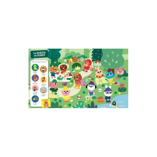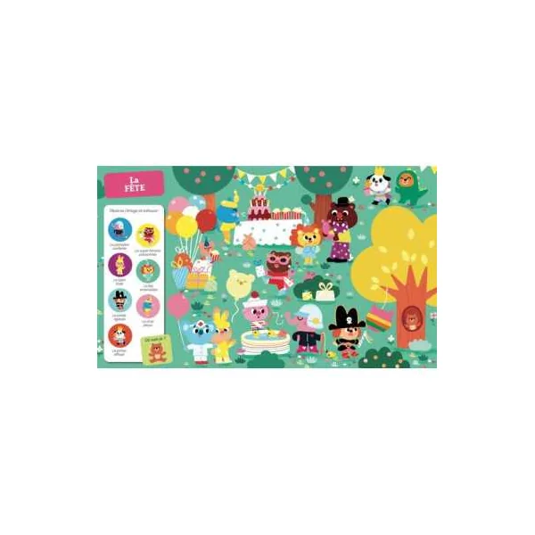 À travers 9 illustrations représentant des scènes du quotidien foisonnantes de détails, les petits partent à l’exploration de leurs émotions. Ils observent attentivement et retrouvent 7 éléments, ainsi que la mascotte bien cachés sur chaque planche.