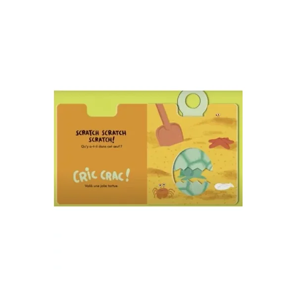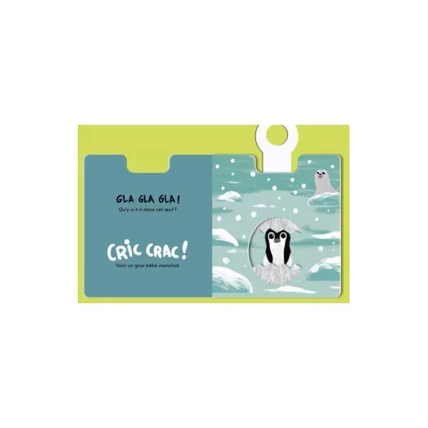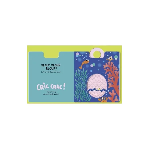 Toc, toc, toc! Qu’y a-t-il dans mon œuf? Tire sur la poignée qui fait clac et découvre qui se cache à l’intérieur. Un livre-surprise à tirettes pour découvrir les bébés animaux qui naissent dans des œufs.