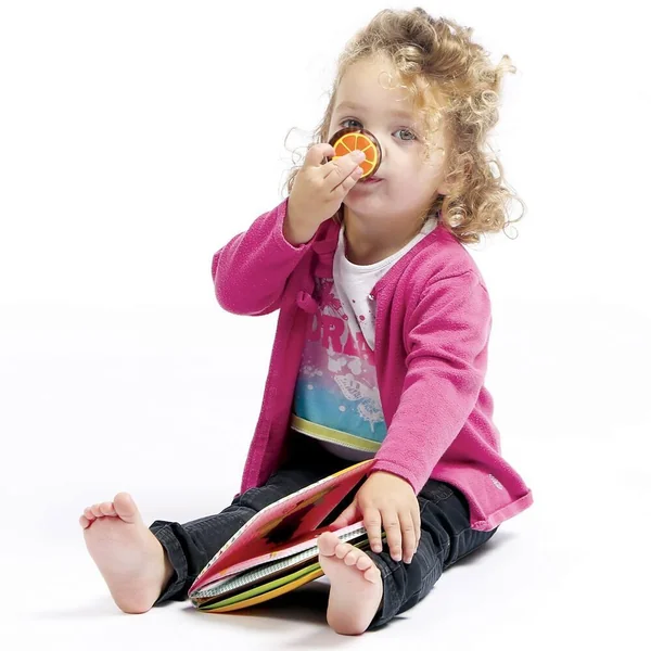 Un livre mais pas que.Retrouvez également un jeu d’association ! Cinq petites vignettes représentant la tranche des fruits accompagnent le livre.