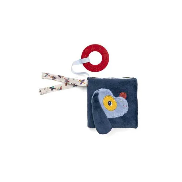 Ce livre développe la vue, la motricité et la réflexion, tout en favorisant le langage grâce à ses pages colorées, ses textures variées et ses activités. Un anneau de dentition rouge, accroché à l’imagier, apaise les gencives sensibles grâce à ses motifs en relief.