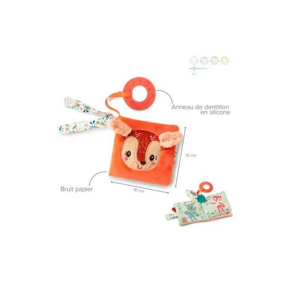 Retrouvez le faon Stella au cœur de la forêt en compagnie de tous ses amis. Un imagier tout doux qui stimule la vue et l’audition et présente même un anneau de dentition pour soulager les gencives des tout-petits.