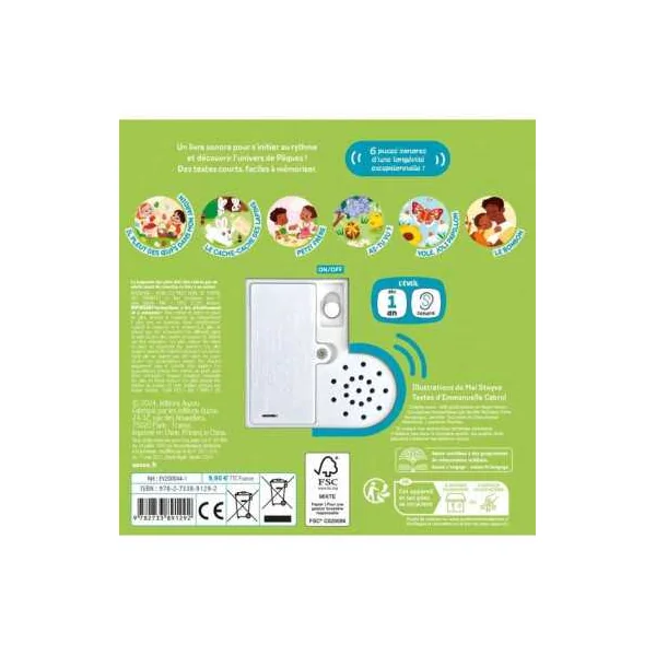 Un livre musical à mettre entre les mains des enfants en toute autonomie ou à partager joyeusement. Des textes courts et faciles à mémoriser avec 6 puces sonores d’une longévité exceptionnelle.