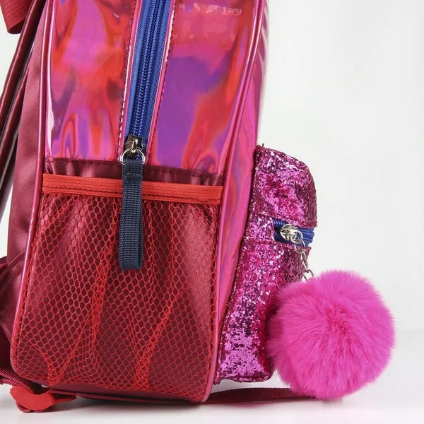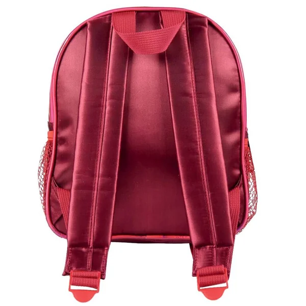 Sac à dos zippé avec bretelles réglables et rembourrées. Un espace de rangement principal et une petite pochette à l’avant. Avec anse d’accrochage et poche filet latérale. Matières : 50% polyester, 30% PVC et 20% PU. Ce produit n’est pas un jouet.