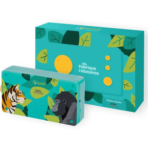 À choisir entre deux titres depuis l’application Lunii. Partenaire des moments calmes, enrichissants et ludiques – Du lever au coucher, Ma Fabrique à Histoires est le compagnon idéal de votre enfant à tout moment de la journée: en voiture, en train ou à la maison… Mode nuit pour s’endormir en histoires – Cette fonctionnalité permet d’enchaîner automatiquement plusieurs histoires, de limiter le volume sonore et de supprimer la relance lumineuse et audio à la fin des histoires pour s’endormir paisiblement. Lunii, une réussite française ! Lunii a initié le marché des conteuses avec Ma Fabrique à Histoires. Fabriquée en France et éco-conçue, elle a obtenu le label « Origine France Garantie ». La boîte à histoires iconique verte et jaune a déjà réveillé l’imaginaire de plus d’un million d’enfants à travers le monde. Enregistrez vos propres histoires audio – Depuis l’application gratuite Lunii, créez et enregistrez vos propres histoires audio avec les voix de la famille et écoutez les sur Ma Fabrique à Histoires.