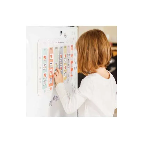 Ce tableau magnétique est un excellent support pour l’aider à se repérer dans sa semaine : “est-ce qu’il y a école demain”, “où vais-je manger ce midi ?”.