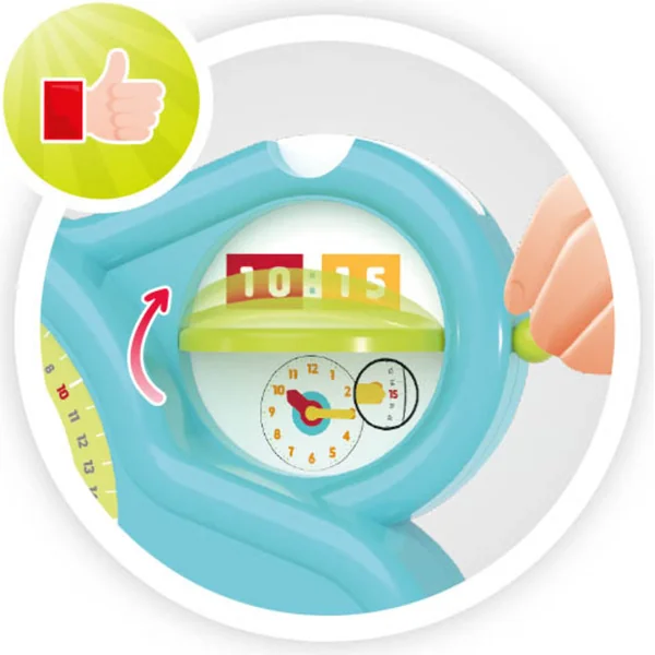 Une fois l’apprentissage maîtrisé, l’outil pédagogique peut être transformé en une horloge fonctionnelle avec alarme – en insérant un mécanisme d’horloge électronique (inclus dans le jouet).