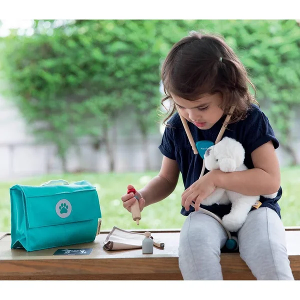 Encouragez vos enfants à être empathiques et apprenez à soigner les animaux avec cet ensemble vétérinaire. Il se compose des équipements médicaux de base : un vaccin, un bandage, une collerette, un thermomètre, une seringue, un stéthoscope, 2 radiographies et une valise pratique pour transporter le tout. (peluche non fournie).