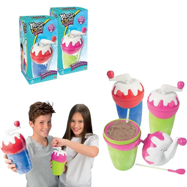 Hmm, trop fun cette machine à Milkshakes ! Rafraichis-toi avec de délicieux milkshakes ou des granités que tu as créés et régale-toi avec tes Hmm, trop fun cette machine à Milkshakes ! Rafraichis-toi avec de délicieux milkshakes ou des granités que tu as créés et régale-toi avec tes amis ! Disponible en 2 couleurs : Rose et Vert OU Bleu et Rouge. Installe le support bas de la machine au congélateur pendant quelques heures, une fois congelé, verse ton jus ou lait aromatisé favori. Ensuite, il te suffit de remettre le couvercle et de tourner la manivelle ! Secoue la machine et recommence à tourner la manivelle. Le milkshake est prêt !! C’est parti pour se
