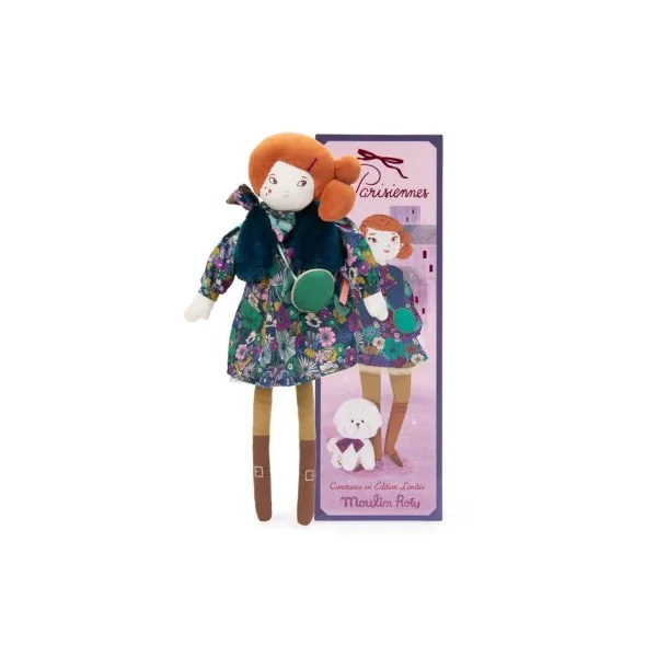 Découvrez la poupée Mademoiselle Constance de la collection Les parisiennes de Moulin Roty, une adorable poupée chiffon toute apprêtée à la pointe de la mode. Une grande poupée de 47 cm dans une magnifique boite cadeau.