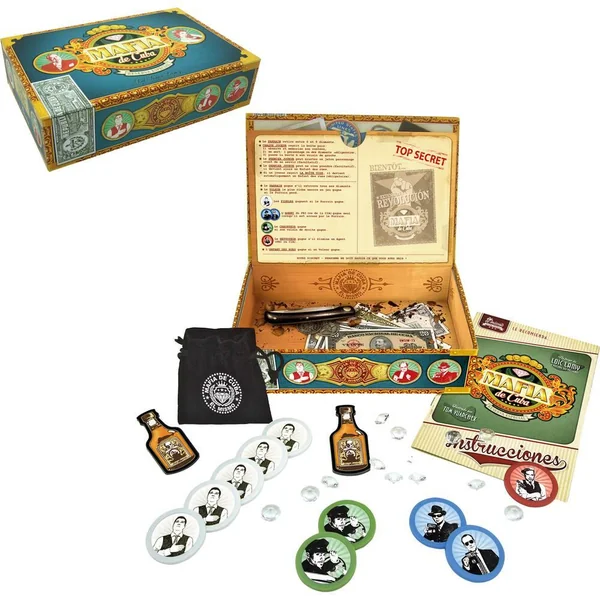 La Havane, 29 décembre 1955, le parrain a invité ses hommes à partager son repas. La journée a été bonne : le double-fond de sa boîte à cigares est garnie de diamants. Le téléphone sonne : le président Batista souhaite s’entretenir avec lui… Le parrain confie sa boîte à ses fidèles. Quand il revient, il manque des diamants. Qui les a volés ? À lui de mener l’enquête ! Parrain, à vous de déterminer qui est qui et de retrouver vos précieux diamants. En échange, offrez des chaussures en béton aux traitres ! Durée d’une partie : 20 mn. De 6 à 12 joueurs.