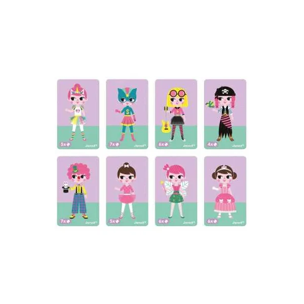 Un jeu ludique composé de 46 magnets et de 8 cartes. Une fois le livre ouvert, le but du jeu est de recomposer sur la scène le déguisement indiqué sur la carte à l’aide des magnets.