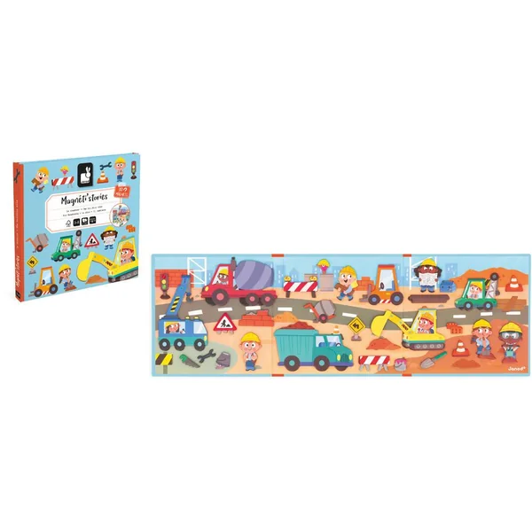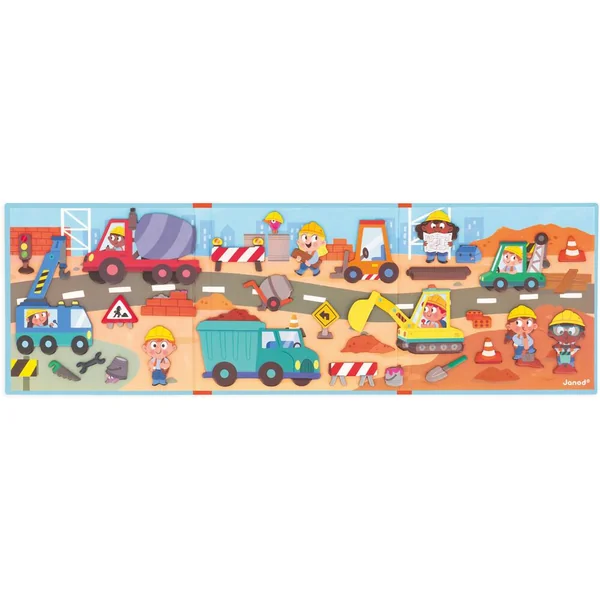 Ouvrez ce livre pour rejoindre le grand chantier ! Chaud devant, la bétonnière arrive et le marteau-piqueur est en route. Heureusement que l’architecte est là pour organiser le chantier ! Grâce au décor magnétique et aux 30 magnets votre enfant pourra donner vie aux personnages et véhicules pour faire avancer le chantier. Jouet magnétique en carton FSCTM. Jouet pour les enfants à partir de 3 ans.