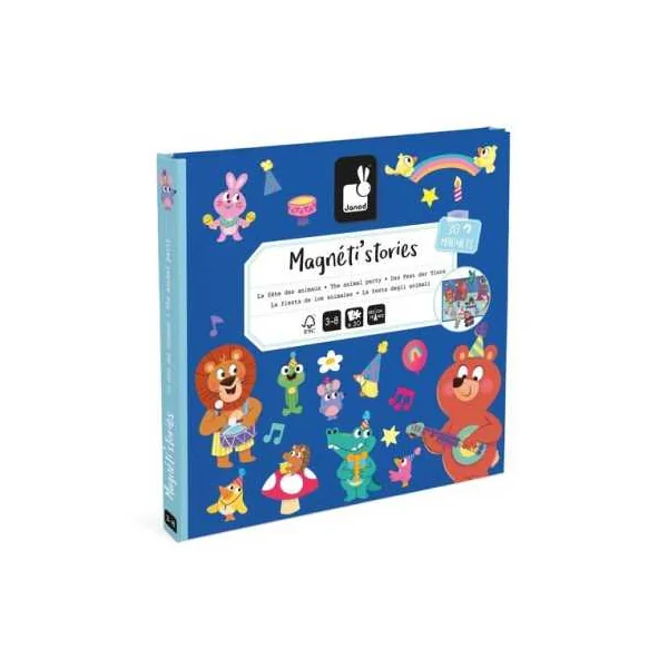 Découvrez le Magnéti’stories La fête des animaux de Janod, un jeu magnétique dans lequel les enfants dès 3 ans, vont s’amuser à imaginer des scènes grâce à des magnets sur le thème de la fête.