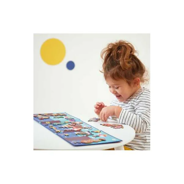 Un livre magnétique avec 30 magnets, un format de voyage idéal pour jouer dans les transports.