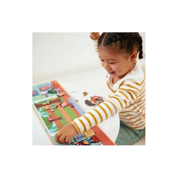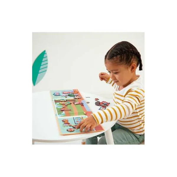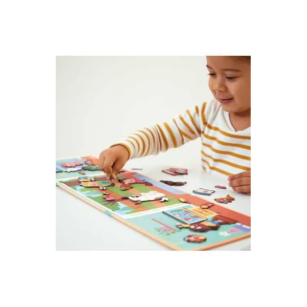 Un livre magnétique avec 30 magnets, un format de voyage idéal pour jouer dans les transports.