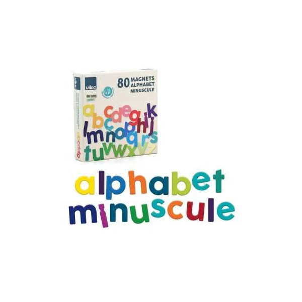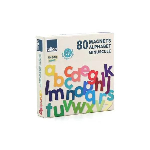Découvrez les Magnets alphabet minuscules bois 80 pièces de Vilac, un coffret éducatif avec des lettres en bois magnétiques pour les enfants à partir de 3 ans. A, B, C, D, E…Et c’est parti pour fredonner la chanson de l’alphabet !