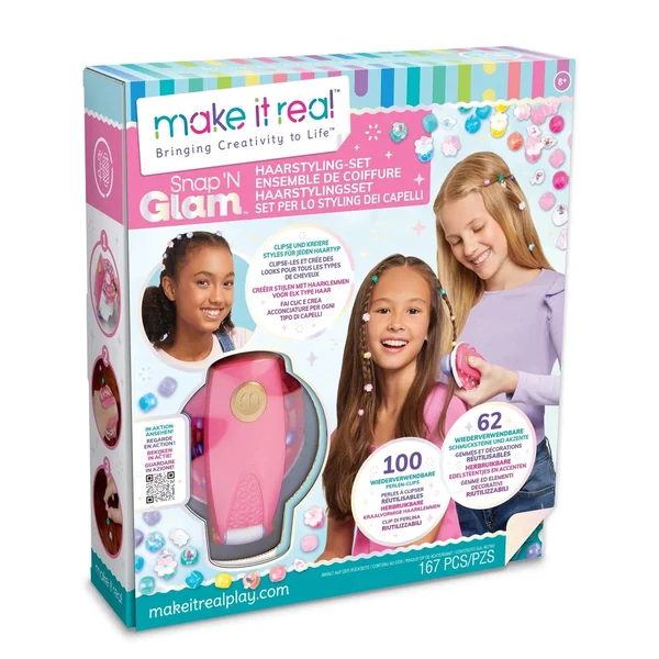 Introducing the Make it Real Hair Styling Set, a delightful toy playset designed to inspire creativity and imagination in young hairstylists. This innovative set allows children to explore the world of hair styling, enabling them to create fun and extravagant hairstyles with ease. With just a click, a clip, and a touch of sparkle, the possibilities are endless, making it an ideal gift for aspiring fashionistas.