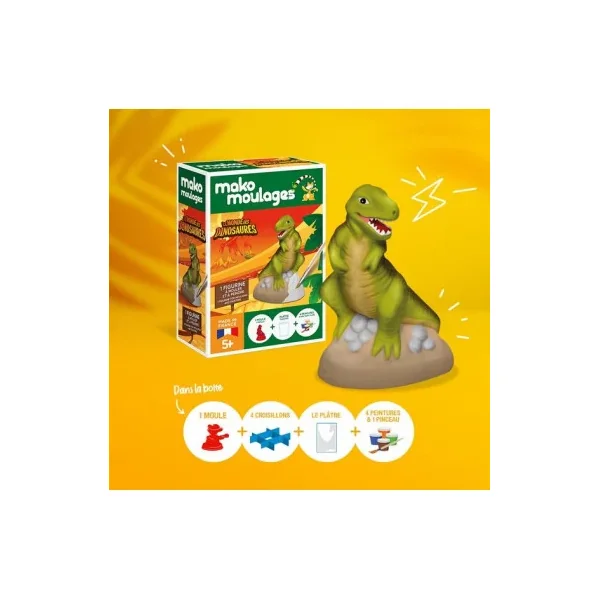 Découvrez le coffret tyrannosaure Mako moulages, une figurine en plâtre à mouler et à décorer pour les enfants à partir de 5 ans. Un coffret fabriqué en France, une activité créative autour du moulage et de la peinture, un cadeau parfait pour les fans de dinosaures.
