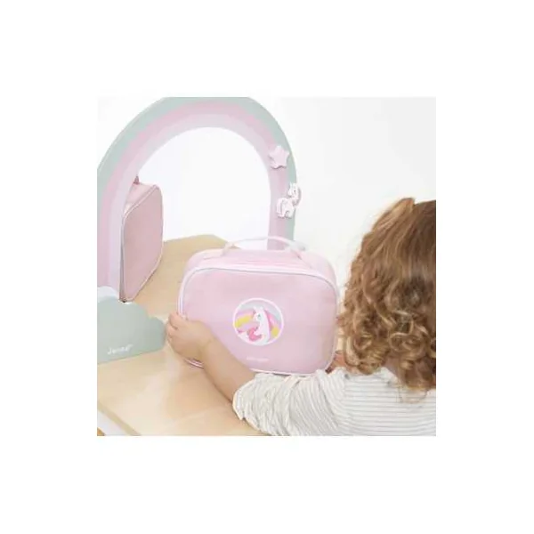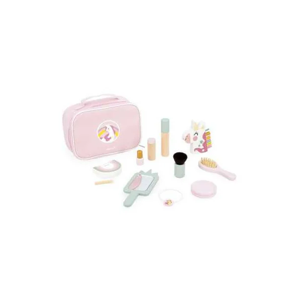 Découvrez la mallette beauté de la collection Licorne de Janod, une adorable valisette conçue pour les enfants de 3 à 6 ans, renfermant tout le nécessaire pour s’amuser à se coiffer, se maquiller ou encore prendre soin de ses poupées.