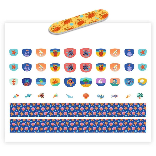 Enfin une manucure adaptée aux petits : express, facile à poser et à retirer ! Du plus petit autocollant pour l’auriculaire au plus gros, pour le pouce, collez, appuyez : c’est fait ! Pas de vernis qui s’écaille, juste le plaisir de décorer ses ongles avec de jolies illustrations ! Et pour varier les motifs ou créer un autocollant sur mesure : coupez un morceau de la bande autocollante correspondant à la largeur de l’ongle souhaité.