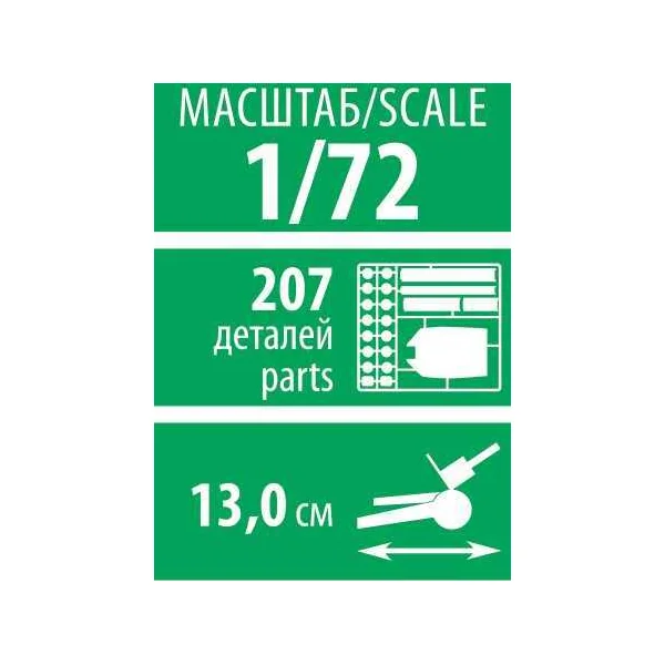 Modèle militaire à assembler. Taille : 1:72 ; 13 cm. L’emballage contient : 207 pièces.