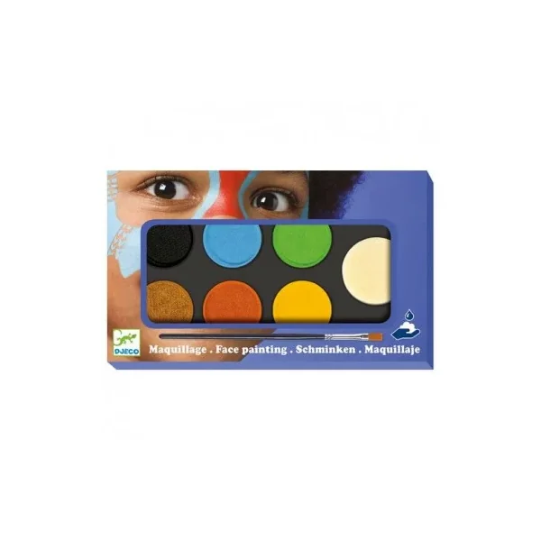 Découvrez la palette de 6 couleurs nature de Djeco, une palette de maquillage spécialement conçue pour les enfants à partir de 3 ans, du maquillage répondant aux exigences des normes cosmétiques avec 6 couleurs : jaune, orange, marron, vert, bleu clair et bleu foncé.
