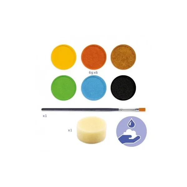 Avec cet assortiment de 6 couleurs, son éponge et son pinceau, vous allez pouvoir réaliser tous les maquillages demandés par vos enfants.