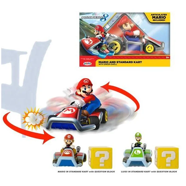Découvre les karts de Mario et Luigi avec leurs fonctions de mouvements en avant et en arrière ainsi que sur le côté en tournant comme les effets dans le jeu vidéo ! Chaque voiture inclue une figurine articulée.