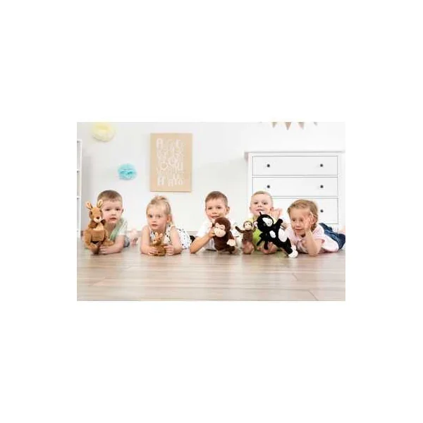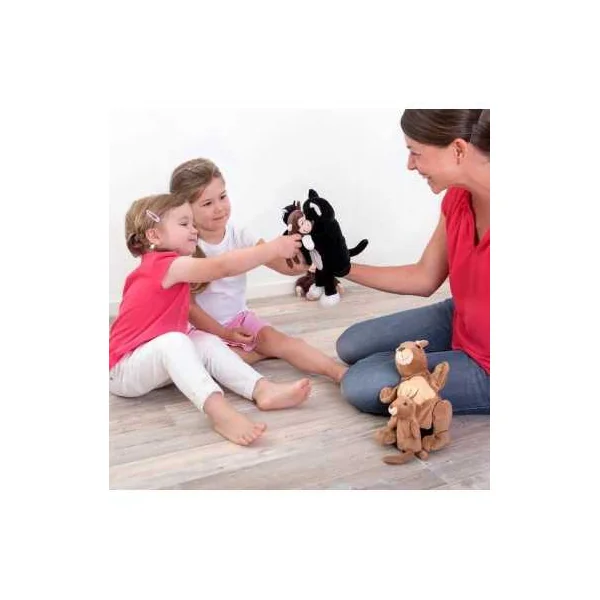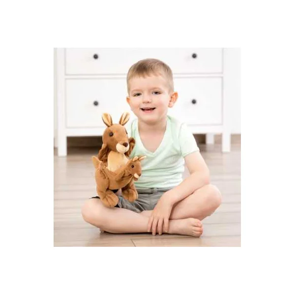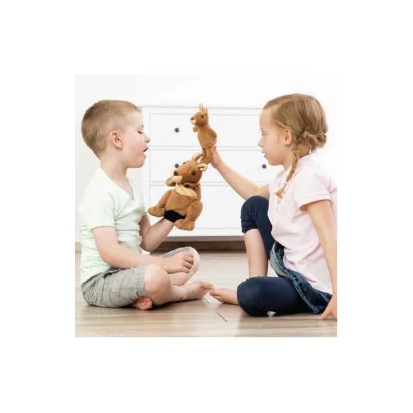 Après avoir enfiler le gant, votre enfant découvrira la maman kangourou et son adorable bébé qui peut se ranger dans la poche avant de la maman, qui pourront lui raconter des histoires ou lui faire des chatouilles.