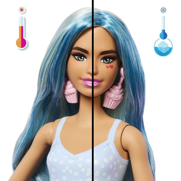 Vous trouverez également deux glaçons réutilisables qui, une fois ouverts, cachent des boucles d’oreilles thématiques et une paire de chaussures ou de bottes. Dans les sachets mystérieux se trouvent une jupe colorée, un animal de compagnie parfumé et un lit assorti. Une surprise encore plus grande est la transformation colorée du visage de la poupée Barbie !