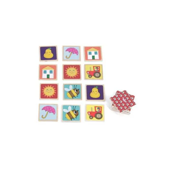 Un jeu de mémoire qui permettra aux enfants d’enrichir leur vocabulaire et leur mémoire pour reconstituer les 24 paires! Retrouvez le tracteur, la vache, la voiture, la pomme etc… Une expérience d’apprentissage amusante et stimulante pour les enfants dès 2 ans. Un jouet durable de 48 pièces en bois présenté dans un coffret.