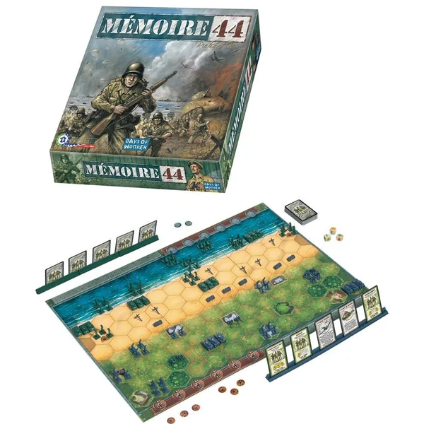 Revivez une quinzaine de batailles célèbres comme les débarquements sur les plages normandes, la libération de Paris, etc. Mémoire 44 est un jeu de plateau et de stratégie qui vous permettra de revivre les grandes heures de la reconquête de la France par les alliés. D’Omaha Beach à Paris, en passant par le Vercors et le Pont de Bénouville vous pourrez recréer les grands moments de cette épopée où il ne fut pas seulement question de supériorité matérielle mais surtout de courage et d’audace ! N’ayez pas peur ! Contient : 1 plateau de jeu double face. 17 scénarios, 60 cartes de commandement, 144 figurines, 44 hexagones de terrain. Des cartes d’aide de jeu et des portes cartes. 1 règle du jeu. Durée d’une partie : 30 à 60 mn. Nombre de 2 à 8 joueurs.