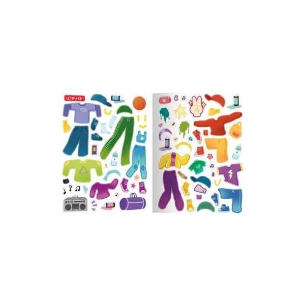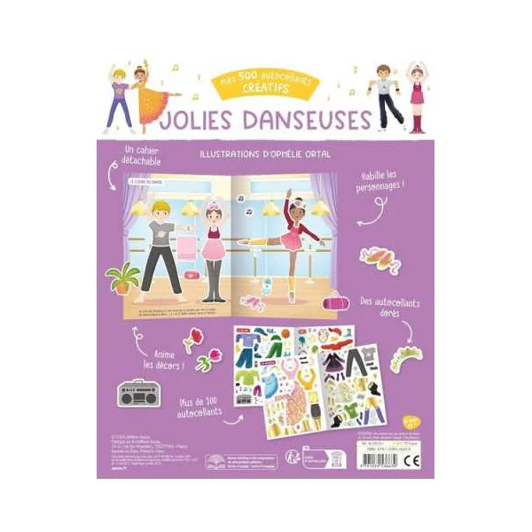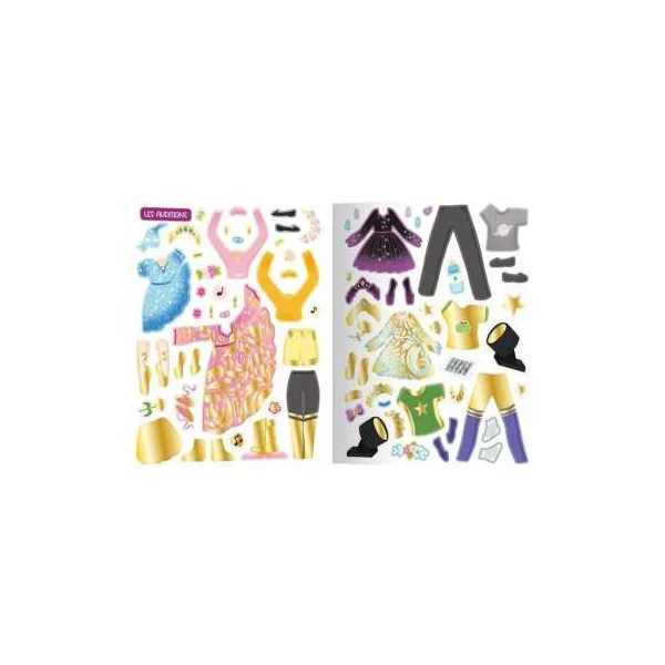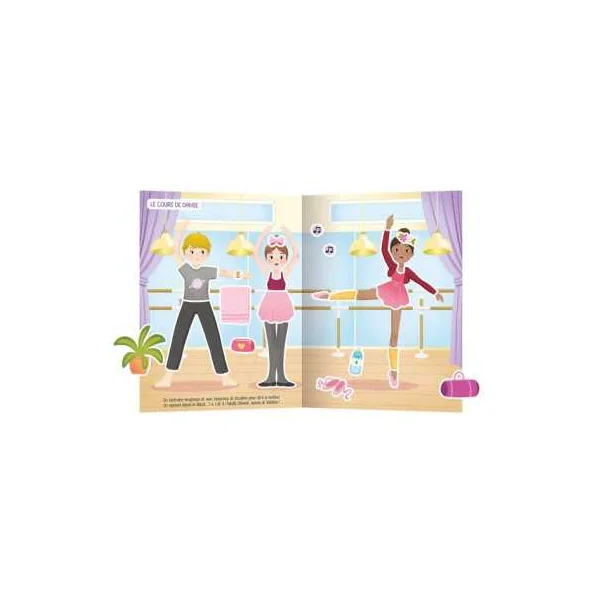 Un cahier de plus 500 autocollants pour habiller des silhouettes et créer plein de looks de danseuses! Une collection d’autocollants pour laisser s’exprimer toute sa créativité. Habillez les personnages et animez les beaux décors grâce aux autocollants spéciaux!