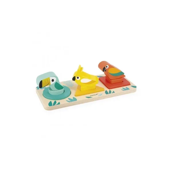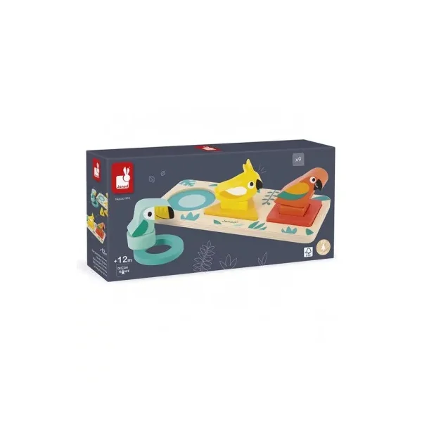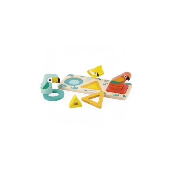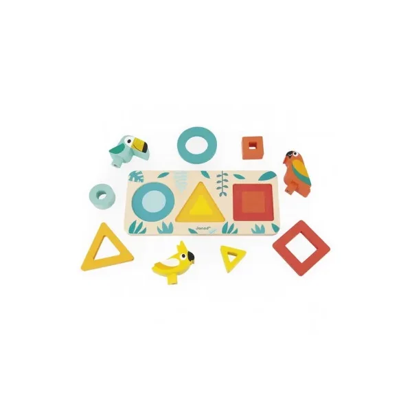 Découvrez mes premières formes de Janod, un jouet en bois éducatif de la collection Tropik sur les formes et les couleurs pour les enfants à partir de 1 an.