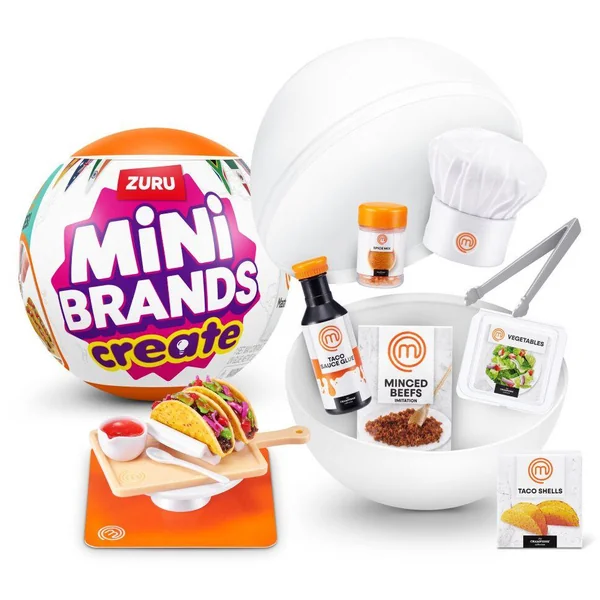 Mini Brands Create MasterChef Série 2 de ZURU est de retour—plus hot, plus savoureux et plus mini que jamais ! Inspirée par de vrais plats du monde entier, cette collection en capsule permet aux enfants, ados et adultes de 8 ans+ d’entrer sous les projecteurs en tant que créatifs culinaires. Chaque capsule inclut un mini plat MasterChef à construire, des ingrédients et accessoires, une vraie carte recette, et une toque LED UV pour faire durcir la résine et accélérer le processus. Avec 11 tout nouveaux plats à créer—des sushis au butter chicken, des tacos de bœuf aux rares pancakes aux myrtilles parfumés—chaque ouverture donne l’impression d’entrer sur le plateau de MasterChef. Le réalisme de chaque set est époustouflant, avec des textures sculptées et de minuscules garnitures qui semblent assez bonnes pour être servies. Suis la vraie recette pour créer la version grandeur nature à la maison, ou garde ton plat comme pièce ultime de collection. Alimenté par la technologie UV, conçu pour la créativité, et fabriqué avec du plastique recyclé certifié—ce n’est pas juste un jouet, c’est une expérience culinaire miniature. Crée-le. Collectionne-le. Maîtrise-le.