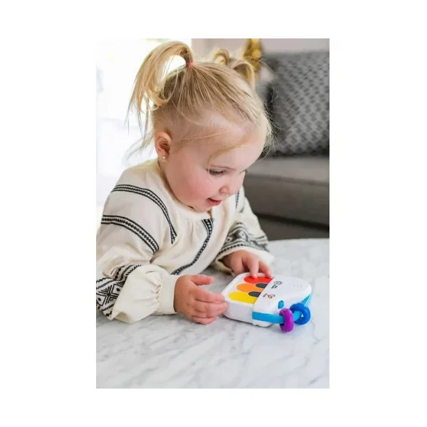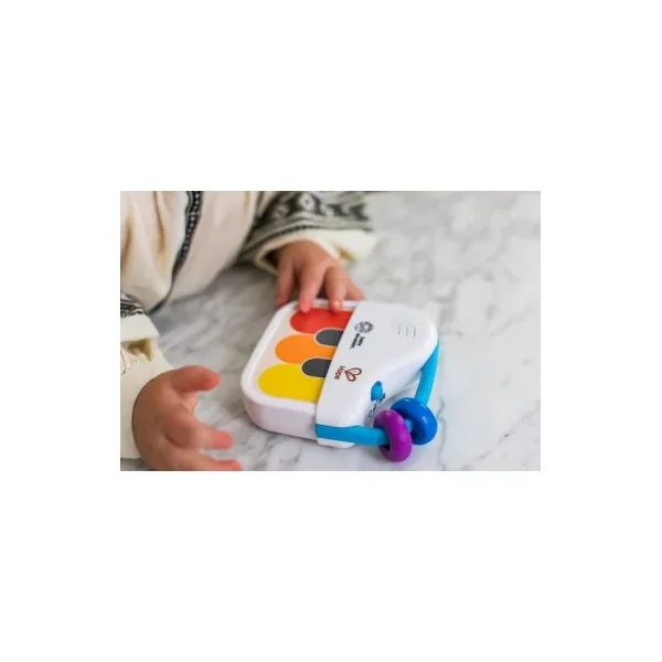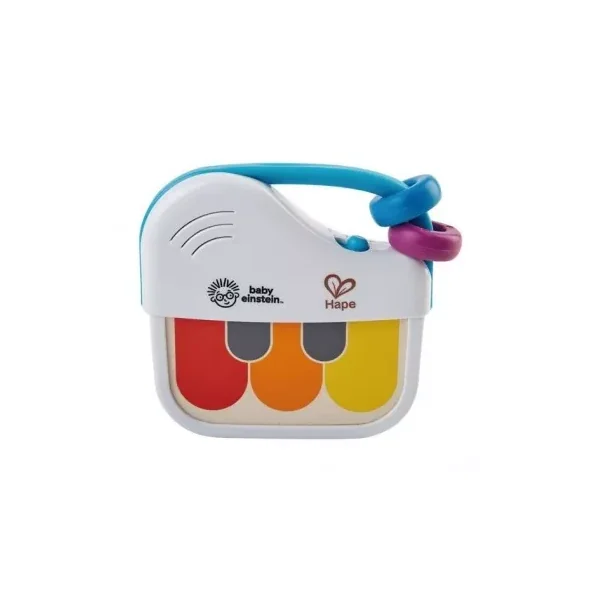 Découvrez le mini piano de Hape, un jouet d’éveil de la gamme Baby Einstein pour les bébés, un hochet musical en bois pour éveiller les bébés. Votre bébé va attraper son nouveau hochet et tapoter sur les touches pour entendre les sons. Un hochet facile à saisir et parfaitement sécurisé.