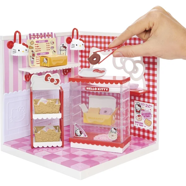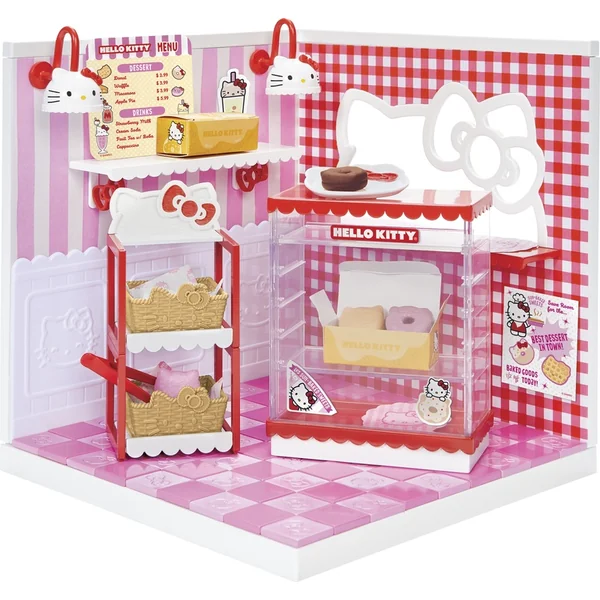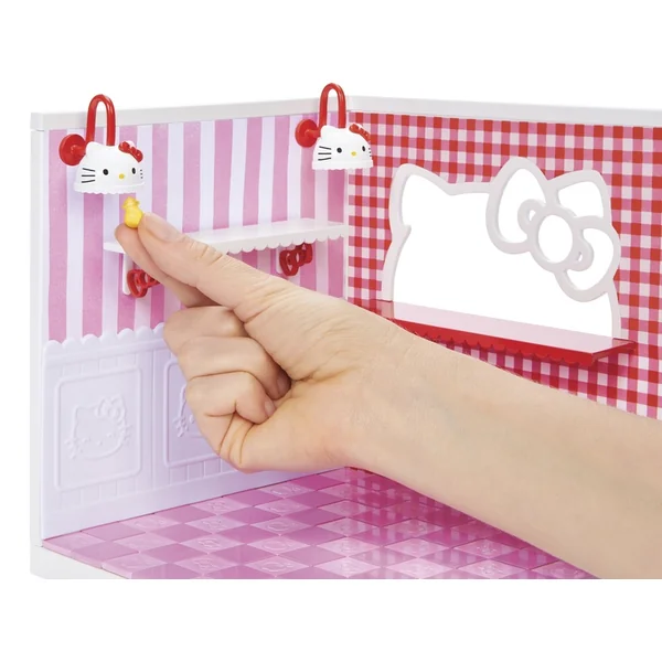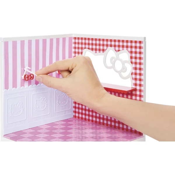 Personnalisez votre espace et aménagez-le selon vos envies ! Changez le papier peint, réorganisez les carreaux et combinez les matériaux. Il existe de nombreuses façons de concevoir et de personnaliser votre espace ! Décorez-le avec des accessoires amusants et des ingrédients inclus dans l’emballage ! Chaque emballage contient un meuble exclusif sur le thème de Hello Kitty, des ingrédients pour remplir les étagères et des mini autocollants Hello Kitty !