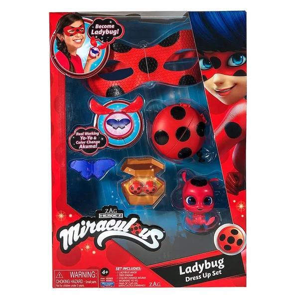 Devenez le célèbre super-héros Ladybug en combattant le crime à Paris! Cet ensemble de jeu de rôle d’habillage de coccinelle offre tout le nécessaire pour « se transformer » en coccinelle! Cet ensemble d’habillage est livré avec tous les accessoires dont vous avez besoin pour devenir Ladybug: un masque de coccinelle, des boucles d’oreilles à clip de coccinelle, une arme Yo-Yo fonctionnelle, un papillon Akuma à changement de couleur et un Kwami « Tikki ».