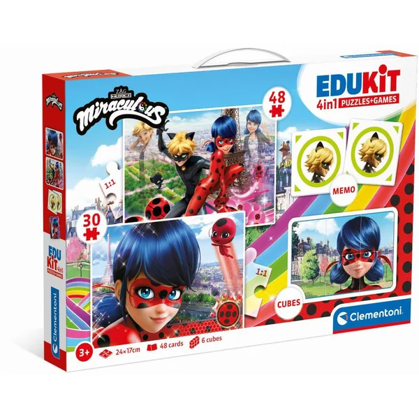 Un coffret complet et amusant pour apprendre en compagnie des personnages de Miraculous ! Contient : un puzzle de 30 et de 48 pièces, un mémo et six cubes. Des activités qui travaillent sur des thèmes préscolaires et développent la mémoire, la logique et la dextérité manuelle.