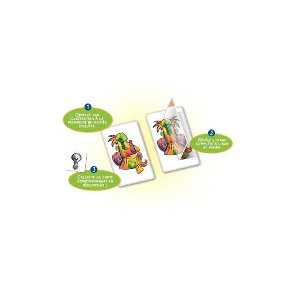 Dans Miroir Magique, des moitiés d’éléments sont cachées et entremêlées en une grande image colorée. Vous devrez pourtant les reconnaître et les révéler!