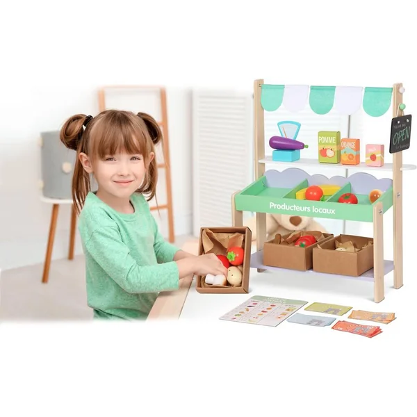 Épicerie en bois pour enfants avec enseigne « Producteurs Locaux »