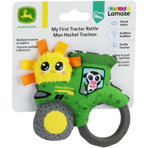 Un joli hochet en forme de Tracteur avec des contrastes en noir et blanc d’un côté et différentes couleurs et textures de l’autre. Bébé adorera explorer les rubans en satin tout en développant sa motricité fine, découvrir le petit hochet caché dans la roue du tracteur ou encore se servir de l’autre roue comme anneau de dentition et ainsi soulager ses gencives douloureuses.