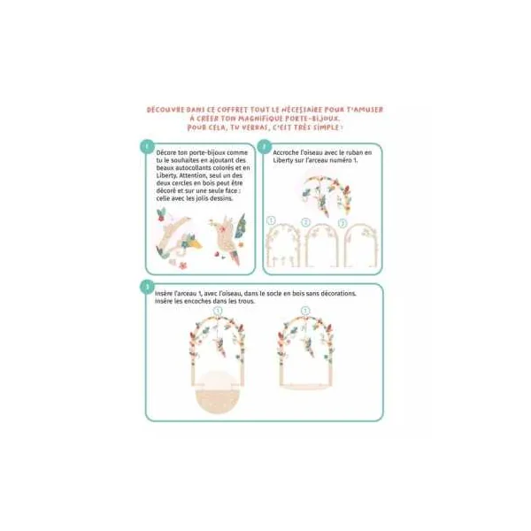 Découvrez Mon joli porte bijoux en bois de Auzou, un magnifique coffret créatif à partir de 6 ans pour construire son propre porte-bijoux en bois. Il est à personnaliser à l’aide d’autocollants en tissu en motif Liberty. Idéal pour ranger ses bijoux.