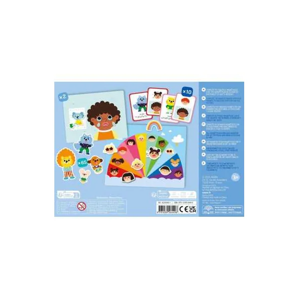 Un coffret cadeau de la gamme Auzou éveil pour les enfants à partir de 3 ans qui comprend 2 tableaux magnétiques, 65 aimants et 10 cartes sur le thème des émotions.